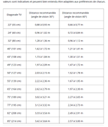 pour obtenir un angle d'environ 30° et 40° (pour TV UHD 4K et TV HD1080p, format 16/9).