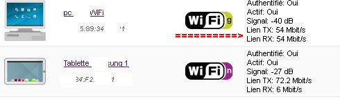 Le lien Rx indique la syncho en UP pour l'appareil (reçu par le Server). Pour Rx = 54,4 Mb/s, le débit utile sera de 25 à 30 Mb/s et pour 72,2 de 35 à 40 Mb/s.