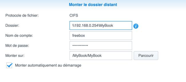 Je n’ai pas trouvé la réponse avec une Freebox Pop. J’ai branché un DD USB sur le serveur de la Freebox Pop et je n’arrive pas à le configurer avec mon Synology.
